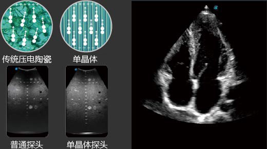 先进的单晶体探头具备优异的声学性能和超高的频带宽度,以更高的穿透力 和优异的图像性能为成像困难的患者提供更多的诊断信息。